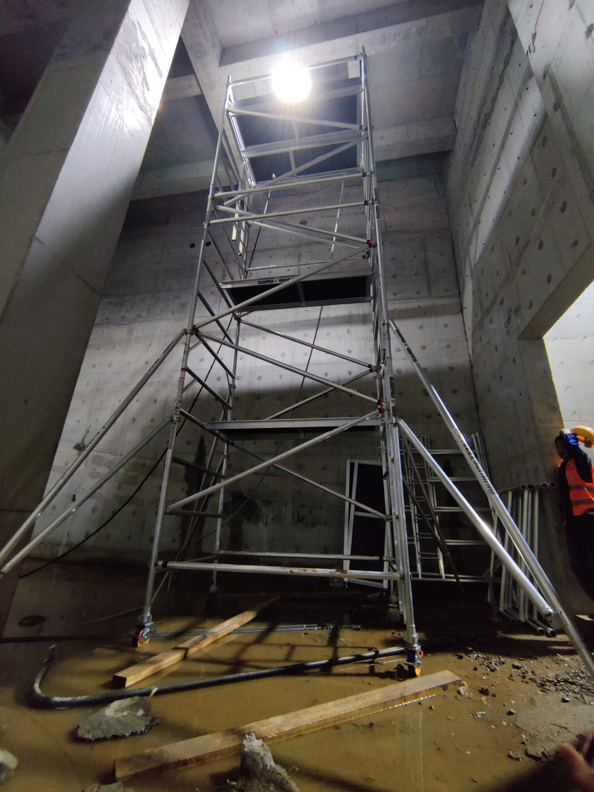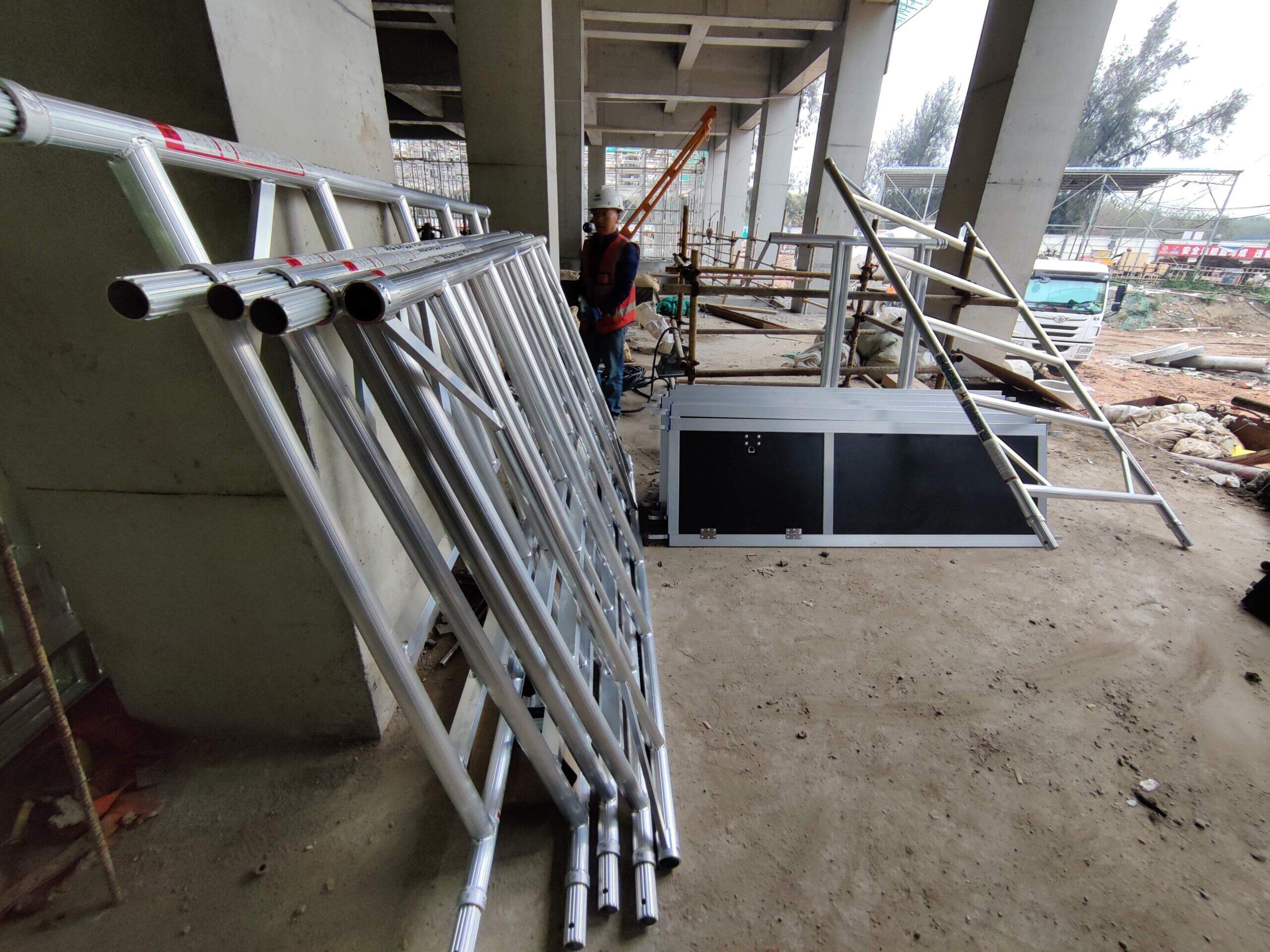 固戍水质净化厂二期工程位于宝安区西乡街道固戍村固戍水质净化厂一期工程用地以西,总占地面积16.24公顷,总投资146191.73万元。为集约利用土地,水质净化厂生化区采用双层上盖型式,上层建设体育主题公园,中间层建设停车场。 施工项目为固戍水质净化厂需要每月对设备检查维修,高度为8m,可移动脚手架,能应对不平地面。 为解决客户检修问题,梯架易为其提供双宽铝合金脚手架(长2m,宽1.35m),全程提供指导安装视频和文档,让施工者快速搭建,快速进入工作状态,高品质脚手架专家梯博士,专业解决工程难题,为高空作业提供安全高效的作业体验。