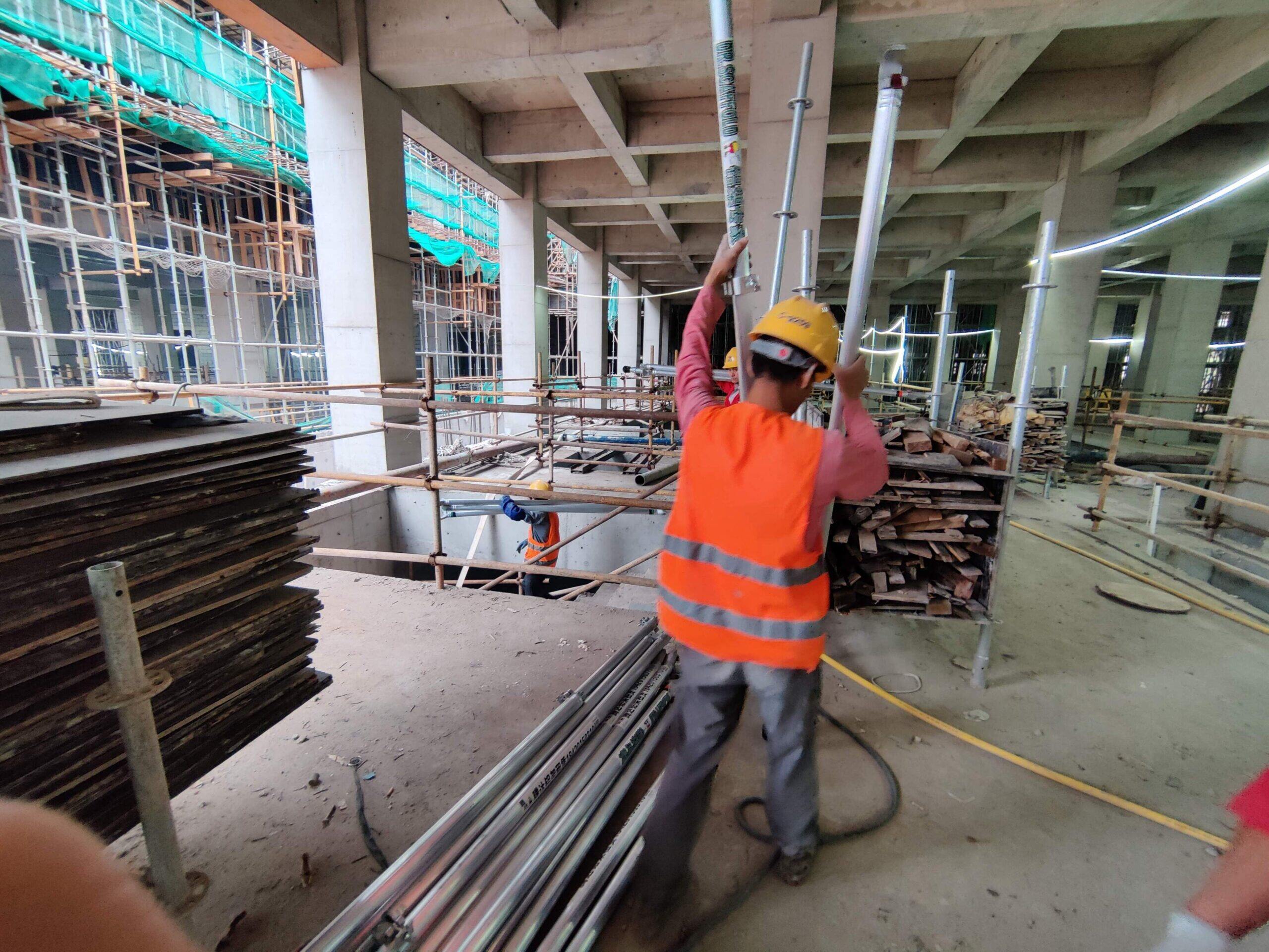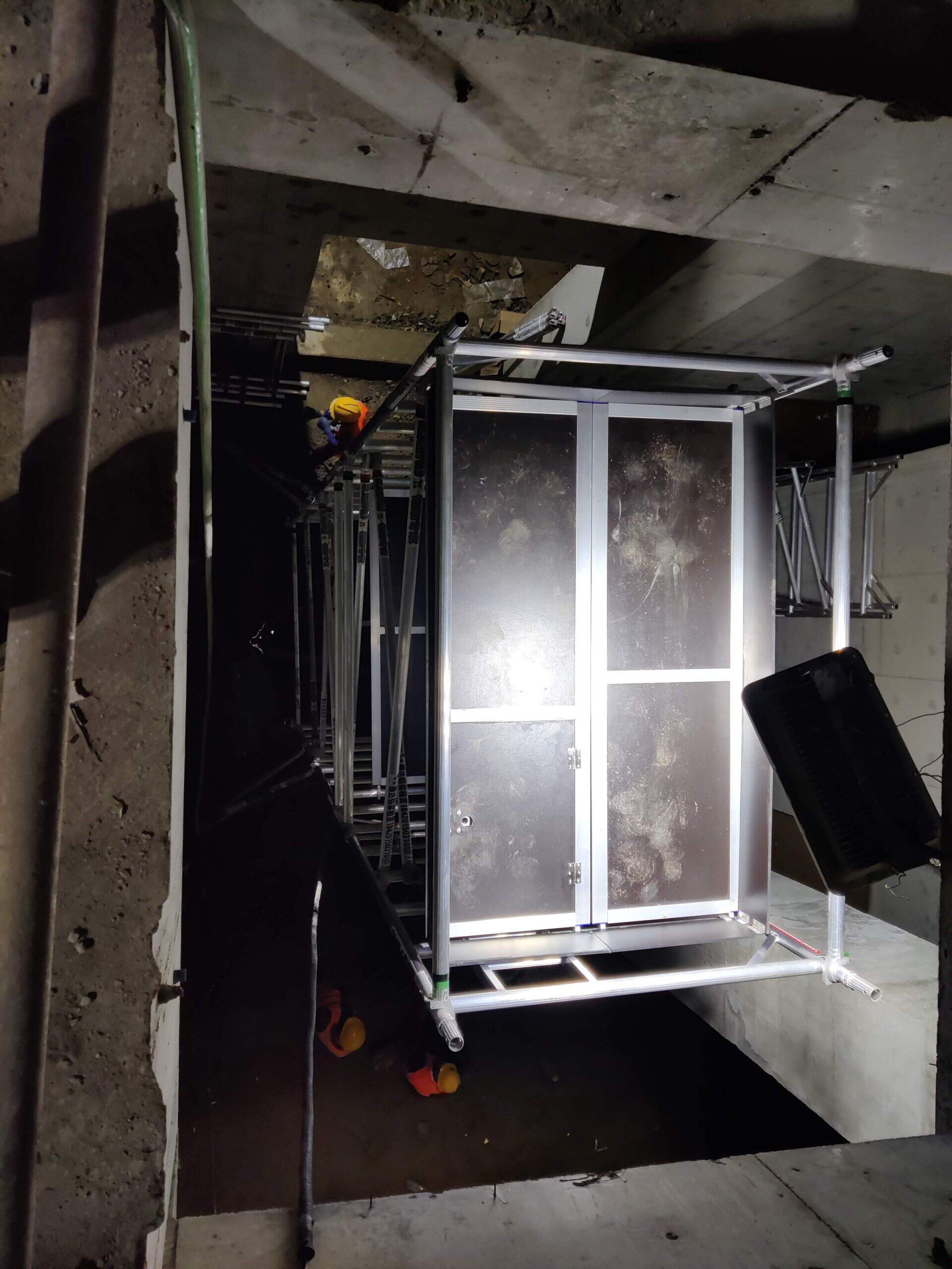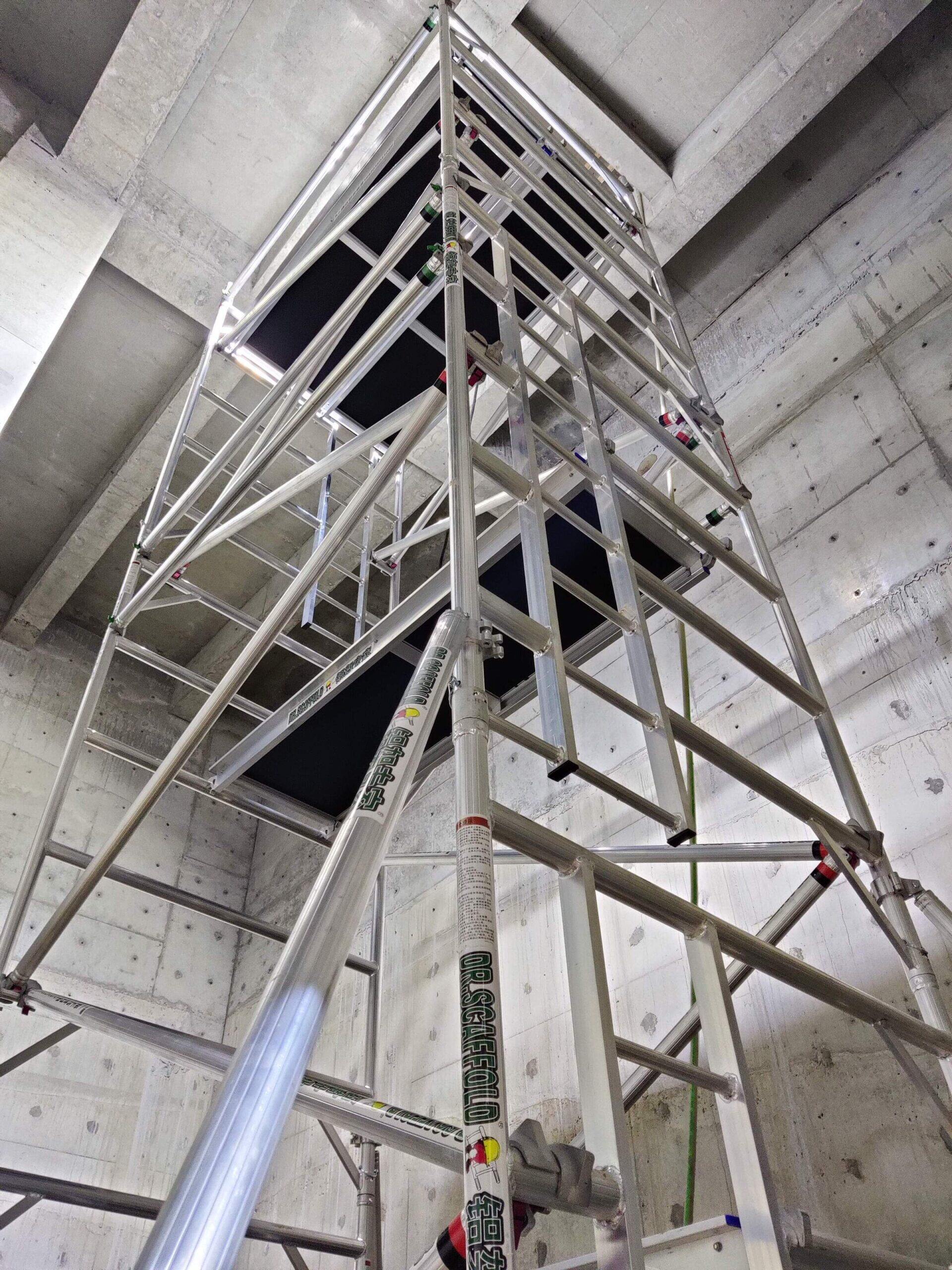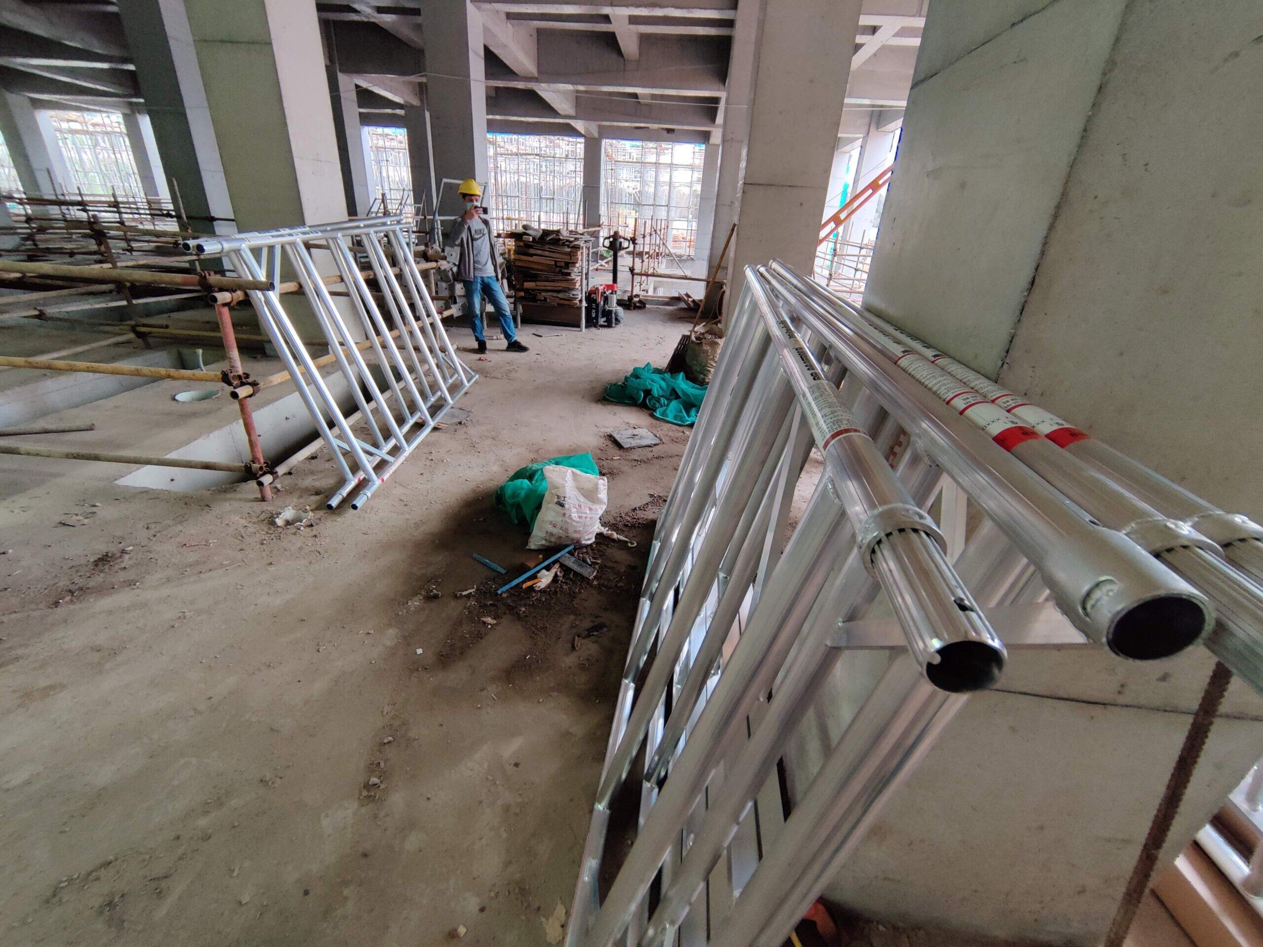立桥金融中心需要修整,由于靠近楼梯和不规则空间,我司采有铝合金盘扣脚手架进行搭建