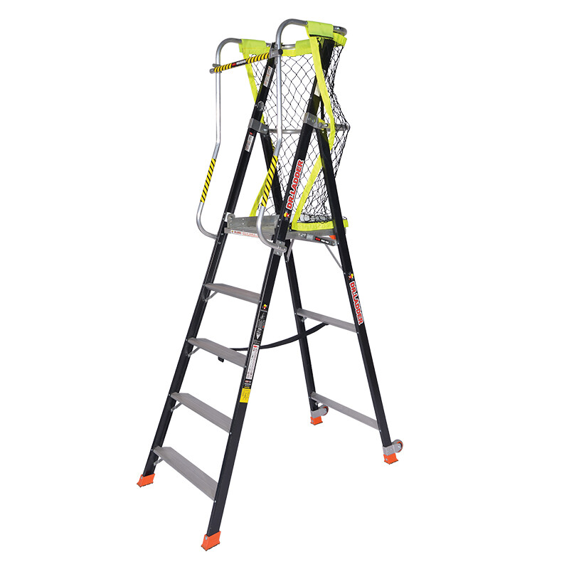 Dr.Ladder®玻璃纤维围栏平台梯轻装版相比重装版,在保证质量标准的前提下,对踏板和玻璃钢侧梁进行轻量化设计,使得梯子的体积和重量大幅下降,极大程度地提升操作的便利性。
