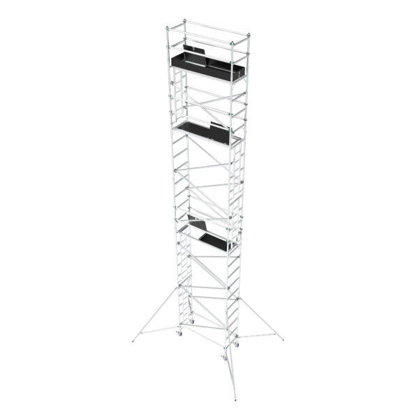 单宽铝合金脚手架工作平台规格为2000*750mm,适用于较为狭窄的作业环境,可根据实际作业高度选择不同型号以适应项目需求。